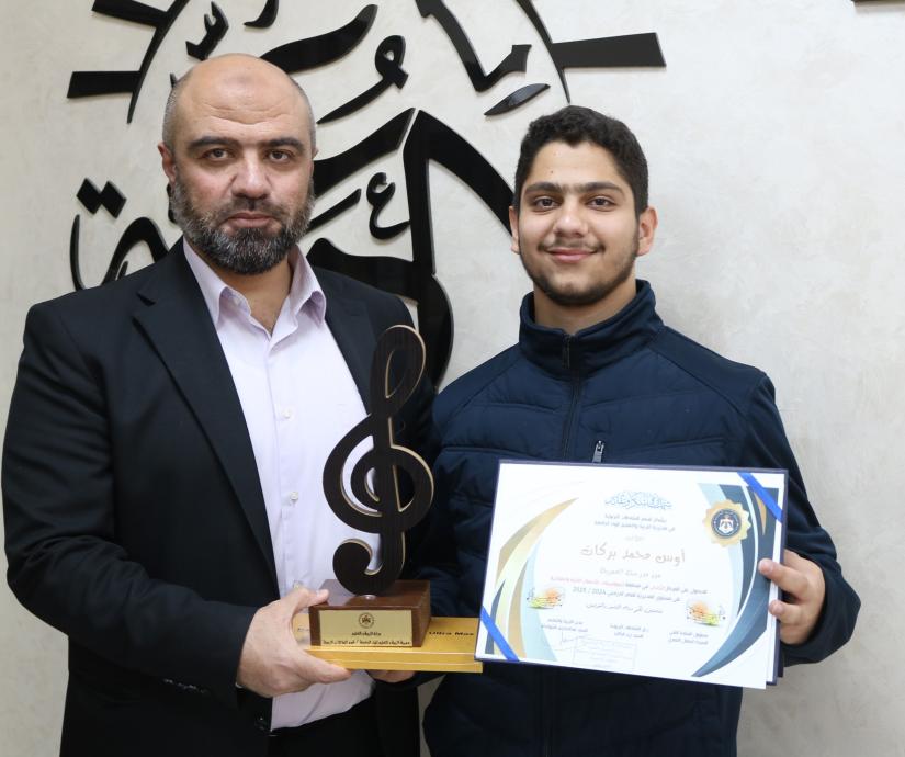 الطالب موفق كحالة / المركز الاول والطالب أوس بركات / المركز الثاني . لتميزهم في الإنجازات المتوالية في المجال الفني ..