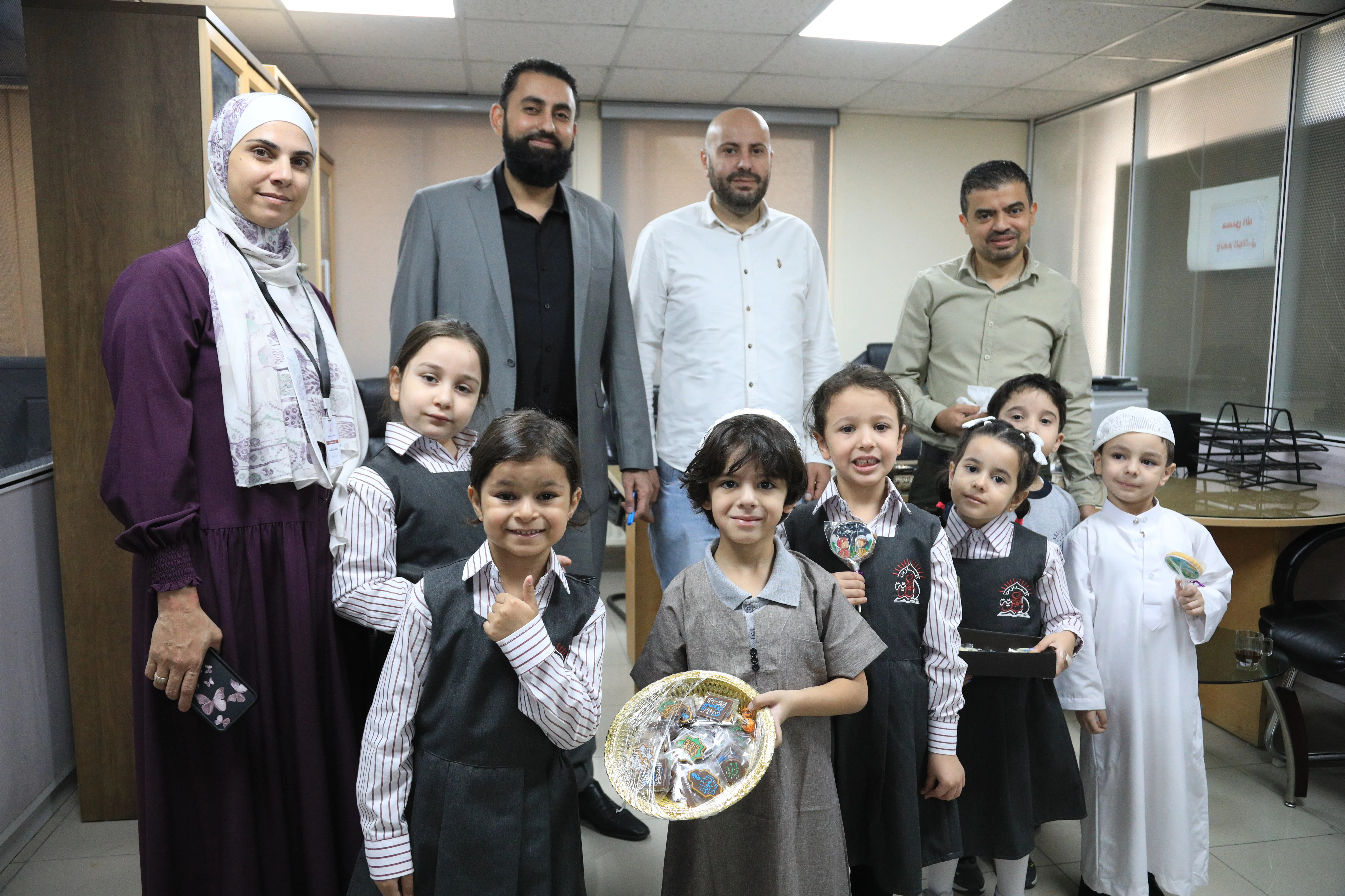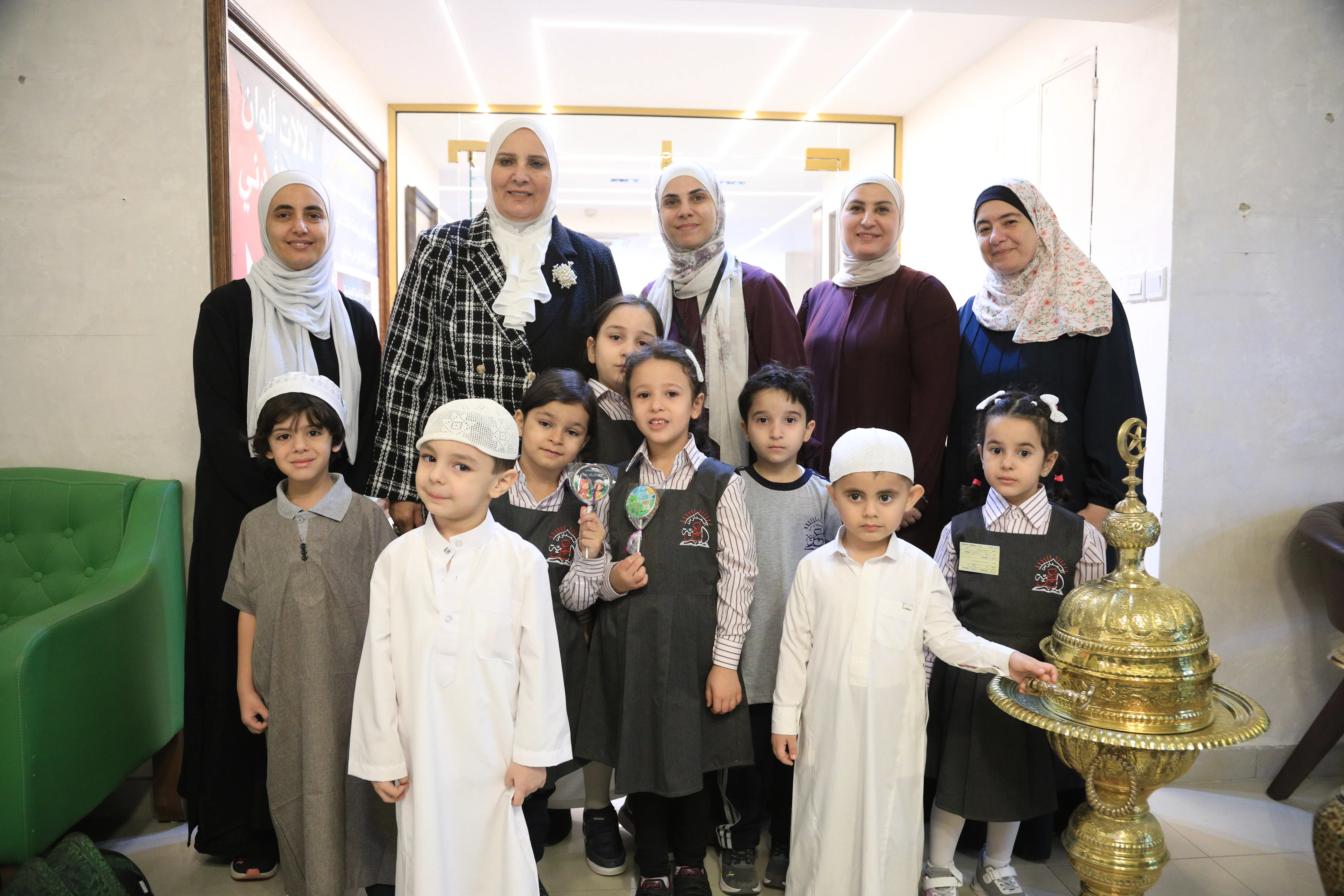 في أجواء مليئة بالفرح والروحانية، زار طلبة الروضة والأساسية الإدارة العامة، وكانت بداية جولتهم من مكتب المدير العام للمدارس العمرية الدكتورة هيام رمضان عيسى، التي أعربت عن سعادتها البالغة باستقبالهم ومشاركتهم هذه الذكرى العطرة. وجال الطلبة بعد ذلك بين أقسام الإدارة حاملين بهجة المولد النبوي الشريف ﷺ، ناشرين المحبة والاحتفاء بين الموظفين
