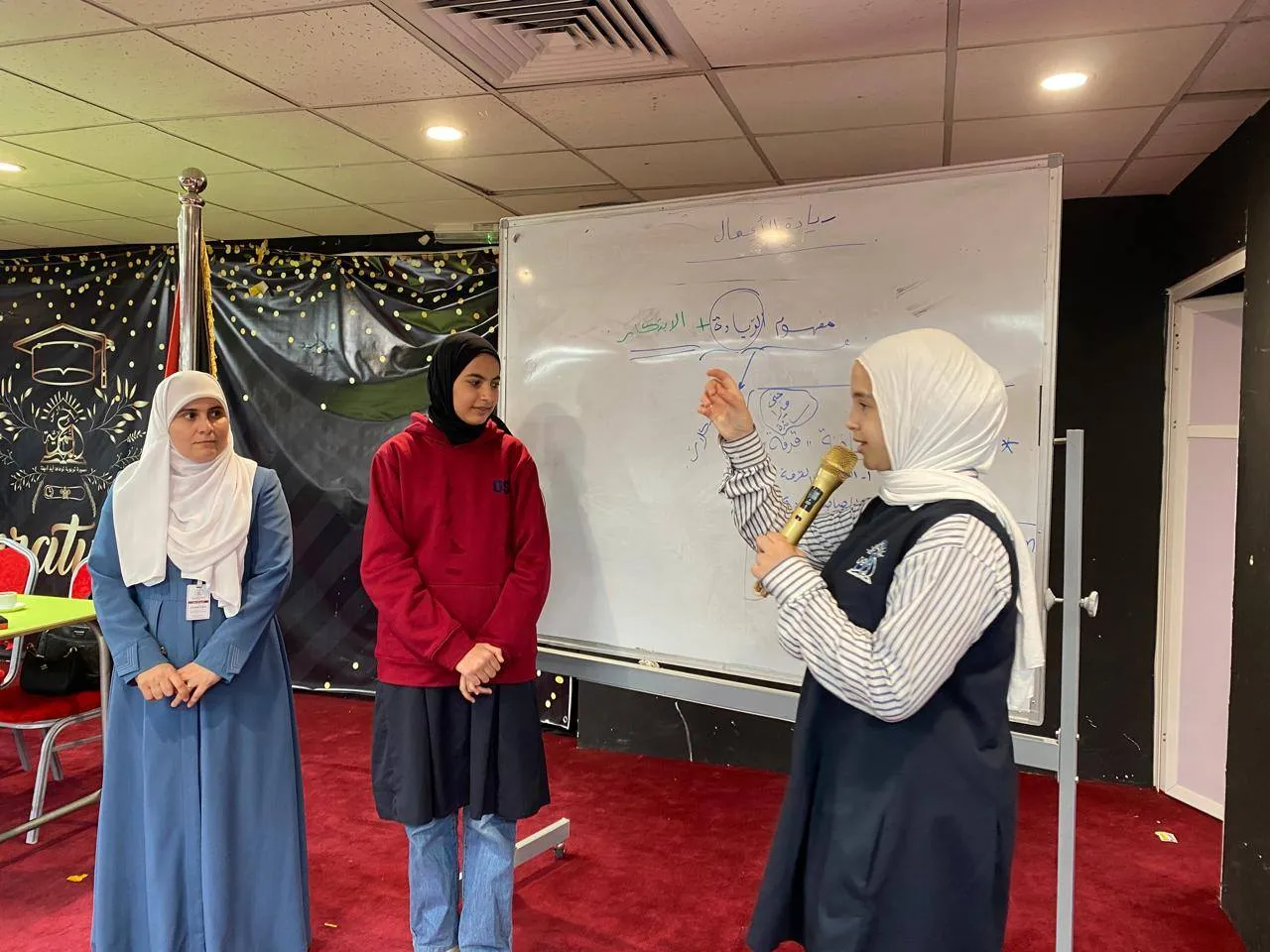 وقد قدّم الفريق عرضًا شيقًا حول مفاهيم الريادة وأهميتها في بناء جيل ريادي مبدع يمتلك مهارات التفكير الناقد وحل المشكلات، وسط تفاعل مميز من الطلبة.